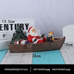 Material: Resina Tamanho: 26 x 10 x 13,5 cm Peso: 350 g Escultura exclusiva de barco de Papai Noel — apresenta um alegre Papai Noel tocando um instrumento de cordas enquanto navega com presentes, uma raposa e um pinheiro, criando uma cena mágica de férias. Decoração festiva iluminada — A iluminação LED embutida dentro da árvore adiciona um brilho caloroso para realçar a atmosfera aconchegante e alegre do feriado. Artesanato em resina de alta qualidade — Feito de resina durável e pintado à mão com detalhes intrincados para uso sazonal de longa duração. Perfeito para exibição de mesa — Medindo 26 x 10 x 13,5 cm, é uma peça central ideal para mesas de jantar, cornijas ou mesas de escritório. Enfeite de Natal artístico — combina arte escultórica e narrativa divertida, tornando-se uma decoração deliciosa para cenas de férias em casa ou negócios.