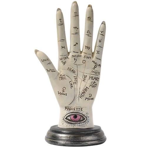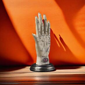 Material: resina sintética Tamanho: 10,5 cm* 9 m* 20 cm Peso: 260 g Escultura exclusiva de mão em quiromancia com símbolos místicos e detalhes oculares, ideal para adicionar um toque de misticismo à decoração da sua casa. Detalhes intrincados pintados à mão na palma da mão, representando vários símbolos astrológicos e de adivinhação para um visual cativante. Perfeita para aqueles interessados em temas místicos e ocultos, esta estatueta funciona como um ótimo acento decorativo para mesas, estantes de livros ou mesas de exibição. Feito de resina durável, o design detalhado e a base robusta o tornam uma excelente peça de referência para qualquer ambiente ou escritório. Dimensões: 10,5 x 9 x 20 cm, leve (260 g) e fácil de colocar em qualquer lugar da casa para adicionar um toque espiritual ou esotérico.