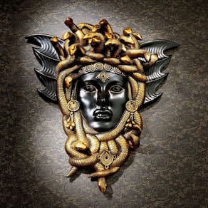 Material: Resina Tamanho do produto: 15* 13* 3 cm Peso do produto: 260 g Design impressionante da Medusa — Esta cativante escultura de parede apresenta o rosto da Medusa, a figura mitológica grega, com seu cabelo feito de cobras, dando à peça uma presença poderosa e dramática. Material de resina de alta qualidade — Feita de resina durável, esta escultura tem uma textura finamente detalhada com um rico acabamento em bronze, garantindo que dure e adicione elegância à decoração de sua parede. Tamanho compacto para exibição versátil — Medindo 15 cm por 13 cm, esta escultura tem o tamanho perfeito para pendurar em salas de estar, quartos, escritórios ou como parte de uma sala com tema mitológico. Arte mitológica — Inspirada na mitologia grega antiga, esta escultura representa o poder e a beleza míticos da Medusa, tornando-a uma peça ideal para fãs da cultura e mitologia gregas. Decoração de casa perfeita — Esteja você decorando sua casa ou escritório, esta arte de parede Medusa traz uma declaração ousada a qualquer espaço, adicionando mistério e um toque artístico ao ambiente.