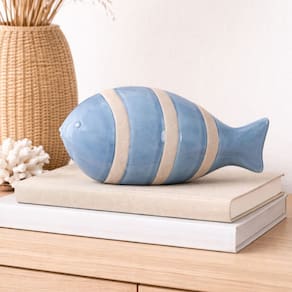 A Escultura Decorativa em Cerâmica – Peixe (Azul/Bege) é a peça perfeita para adicionar charme e personalidade ao seu ambiente. Com design delicado e acabamento artesanal, o ornamento combina tons suaves de azul e bege, trazendo sensação de leveza e harmonia à decoração.