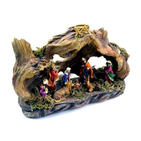 A "Escultura Decorativa Iluminada Presépio Resina" é uma peça de arte que não apenas encapsula a beleza e a reverência do presépio tradicional, mas também adiciona um toque contemporâneo através do uso da resina e da iluminação integrada. Esta escultura não só celebra o significado espiritual do Natal, representando o nascimento de Jesus Cristo, mas também serve como uma peça decorativa que pode iluminar e enriquecer qualquer ambiente.
