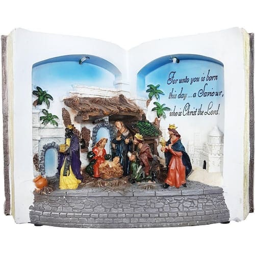 A "Escultura Decorativa Bíblia Iluminada Presépio Resina" é uma peça de arte que não apenas encapsula a beleza e a reverência do presépio tradicional, mas também adiciona um toque contemporâneo através do uso da resina e da iluminação integrada. Esta escultura não só celebra o significado espiritual do Natal, representando o nascimento de Jesus Cristo, mas também serve como uma peça decorativa que pode iluminar e enriquecer qualquer ambiente.