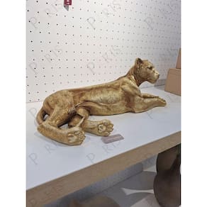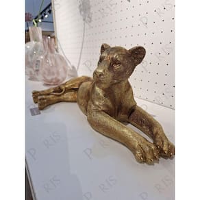 Escultura Decorativa Leoa em Poliresina Dourada Cód: 17525