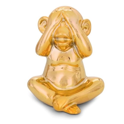 Escultura Decorativa Macaco Cerâmico Dourado (Não vejo) 10x10cm