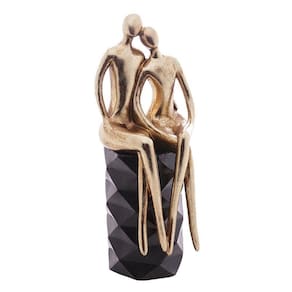 Escultura Decorativa de Resina Casal Sentado Dourado e Preto - Wolff