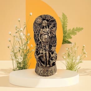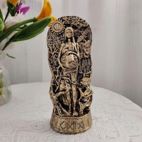Material: Resina Tamanho do produto: 21* 8,5* 5,5 cm Peso do produto: 280 g Impressionante design da deusa grega — Esta escultura de resina retrata uma poderosa deusa grega segurando a Terra, cercada por elementos da natureza, como árvores e animais, incorporando a força e a beleza da natureza. Detalhes intrincados da arte pagã — Com gravuras detalhadas de flora, fauna e elementos celestes, esta escultura captura a essência da arte e da espiritualidade antigas, trazendo um toque clássico a qualquer espaço. Construção durável em resina — Feita de resina de alta qualidade com um lindo acabamento em bronze antigo, esta estatueta oferece uma aparência atemporal e elegante, ideal para ambientes internos e externos. Tamanho de tela perfeito — mede 21 × 8,5 × 5,5 cm (8,3 × 3,3 × 2,2 pol.), tornando-a uma peça central cativante para sua sala de estar, jardim, escritório ou escritório, adicionando profundidade e beleza a qualquer ambiente. Ornamento decorativo versátil — perfeito para estátuas de jardim, decoração de casa ou como uma peça significativa para colecionadores de mitologia grega e arte inspirada na natureza.