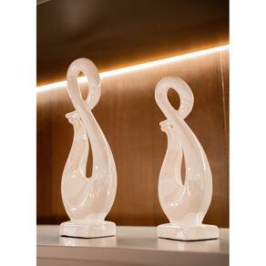 Escultura Em Cerâmica Abstrata Branco Perolado Buzzio's 13x34,5cm -