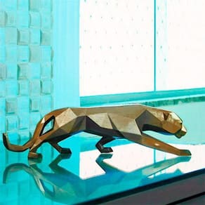 Escultura Em Resina Pantera Bronze 48X13 Cm Escultura em resina pantera bronze 48x13 cm. Observação:as cores dos produtos podem sofrer variações em função das características do monitor e do ambiente durante sua visualização. Matéria prima: Resina. Medida aproximada da embalagem: Compr. X Larg. X Alt. : 52x15x18 cm.