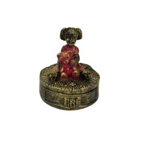 Escultura Erê Menina Dourado e Vermelho Vintage Resina 5 cm