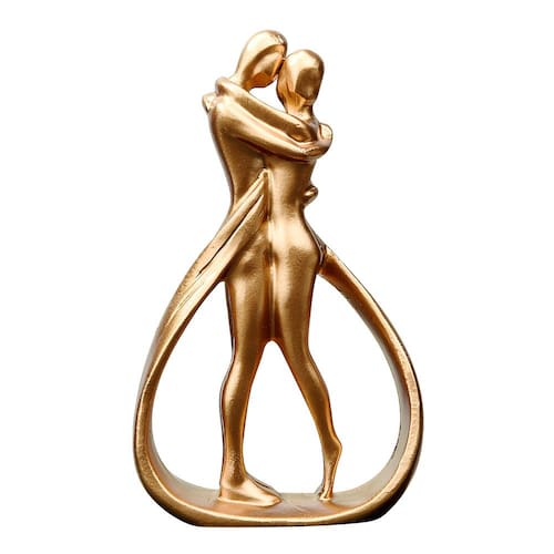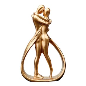 Material: Resina Tamanho: 7,3 x 2,9 x 12 cm Design de abraço romântico — Esta escultura retrata um casal abstrato em um abraço gracioso, simbolizando intimidade e conexão emocional por meio de uma forma fluida e moderna. Acabamento dourado elegante — Com uma superfície lisa e metálica dourada, a estátua adiciona luxo e sofisticação aos interiores das casas, aprimorando ambientes românticos e artísticos. Material de resina durável — Feito de resina premium, o boneco é leve e resistente, garantindo beleza duradoura e fácil colocação em prateleiras ou mesas. Decoração compacta e versátil — Com apenas 12 cm de altura, é perfeita para uso em mesas de console, entradas, mesinhas de cabeceira ou estantes de livros sem ocupar muito espaço. Estilo de arte contemporânea — A forma alongada e sem rosto destaca o expressionismo abstrato, tornando-a uma peça central única para temas de decoração minimalistas e focados na arte.