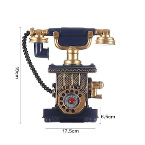 Material: Resina Tamanho: 17,5 x 6,5 x 19 cm Design de telefone antigo com função — Esta escultura replica um telefone rotativo europeu clássico e inclui discretamente um compartimento para moedas, servindo como decoração e como banco de moedas. Detalhamento artístico e artesanato — Com acabamento em elegantes tons de azul marinho e dourado, a estátua apresenta texturas esculpidas, números de mostrador e curvas de telefone para um apelo vintage. Construção durável em resina — Feita de resina de qualidade, esta peça foi construída para durar, oferecendo uma estrutura leve adequada para expositores de mesa e prateleiras. Ornamento decorativo e funcional — Seja em uma sala de estar, escritório ou corredor, ele funciona como uma jarra de economia enquanto aprimora o ambiente interior com charme retrô. Sotaque compacto e atraente — Com 17,5 x 6,5 x 19 cm, esta escultura artística é ideal para espaços estreitos e adiciona um elemento histórico divertido ao seu tema de decoração.