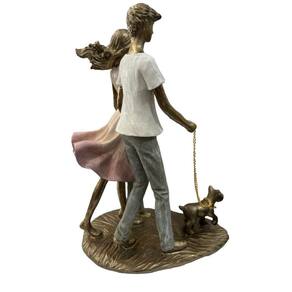 Escultura Estatua Família união Pai Mãe Filho cão passeio