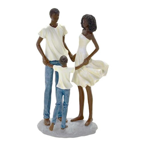 Escultura Família Decorativa Negra em Resina Casal e Menino