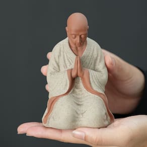 Material: areia roxa Tamanho: 8,5 x 8,8 x 13 cm Design de figura de monge ajoelhado — Esta escultura retrata um monge humilde em uma pose de oração ajoelhada, simbolizando meditação, respeito e paz interior na cultura espiritual tradicional. Cerâmica de areia roxa de alta qualidade — Feita de cerâmica texturizada de areia roxa, combina uma superfície natural salpicada com detalhes de argila lisa para uma estética refinada e artesanal. Decoração compacta e funcional — Com 8,5 x 8,8 x 13 cm, é ideal para desktops, aquários, paisagens de bonsai ou mesas de chá em estilo zen, aprimorando o ambiente espiritual em qualquer espaço. Sotaque cultural e espiritual — A postura delicada e o estilo minimalista incorporam a nova estética chinesa, tornando-a uma peça significativa para ambientes conscientes ou meditativos. Ornamento artístico com várias cenas — Adequado para decoração de interiores, ambientes com temas budistas, salões de chá ou paisagismo em miniatura, esta figura combina tradição com elegância tranquila.