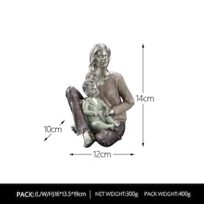 Material: Resina Tamanho: 12x10x14cm Peso: 400 GeMotive Family Design: Esta escultura de resina captura um momento caloroso entre mãe e filho sentados, expressando amor e intimidade familiares por meio de postura e detalhes realistas. Detalhes feitos à mão: habilmente moldada e pintada à mão, a estátua exibe texturas realistas nas roupas da mãe e na expressão da criança para um apelo decorativo elegante. Decoração versátil: perfeita para salas de estar, quartos, mesas de escritório ou estantes de livros, adicionando uma presença sincera e artística a vários ambientes domésticos. Material de resina durável: feito de resina de qualidade, o ornamento é resistente e duradouro, com uma estrutura equilibrada adequada para superfícies planas e decorativas. Elemento decorativo simbólico: uma estátua de figura ideal para aqueles que valorizam a arte com profundidade emocional, simbolizando cuidado, conforto e o vínculo entre pais e filhos.