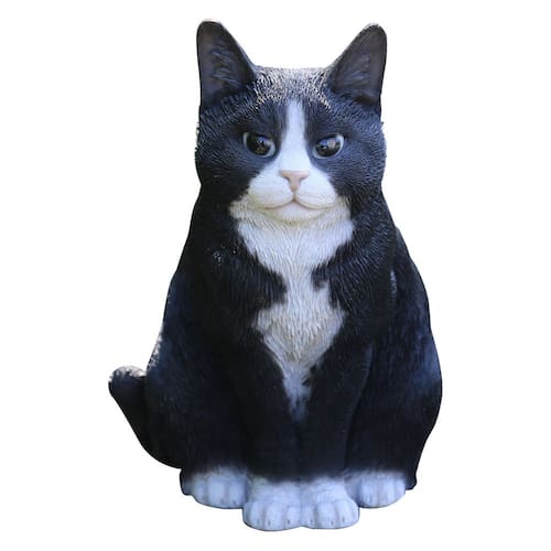 Hi-Line Gift Ltd Gato Sentado, Negro/Blanco - Hermosamente elaborada, pintada con colores vibrantes - Hecha de poli-resina - Ideal para exhibir en el hogar o jardín