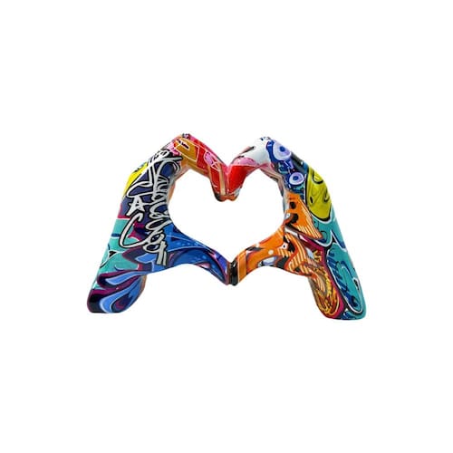 Material: resina Tamanho: 24x9x15,5 cm Peso: 570 g Design vibrante de grafite — Esta escultura apresenta duas mãos formando um coração, aprimorada com elementos de grafite atraentes que a tornam uma declaração artística ousada. O estilo de rua encontra a decoração da casa — Combinando arte urbana com escultura moderna, esta peça adiciona uma energia dinâmica e criativa a qualquer espaço, de salas de estar a estúdios de design. Construção em resina de alta qualidade — Feita com resina durável e finalizada com efeitos de spray multicoloridos detalhados para uma superfície lisa e brilhante que se destaca. Tamanho ideal para exibição — Medindo 24x9x15,5 cm e pesando 570 g, é a peça central de mesa perfeita para ambientes domésticos, de escritório ou de galeria. Decoração moderna versátil — Um ornamento de decoração único e expressivo que complementa estilos de interiores contemporâneos, pop art ou ecléticos com personalidade e elegância.