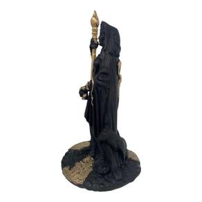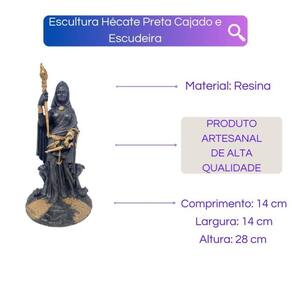 Escultura Hécate Preta Cajado e Escudeira 28cm em Resina Escultura Hécate Preta Cajado e Escudeira 28cm em Resina
