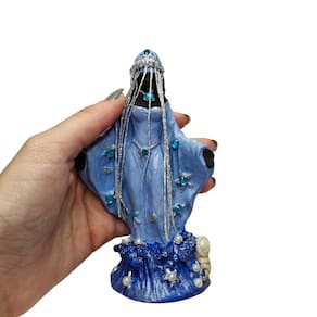 Escultura Iemanjá em Resina com Manto; Leve a presença e a proteção da rainha do Mar para seu altar ou ambiente com essa delicada Escultura de Iemanjá em resina, com acabamento detalhado e manto azul representando sua força, beleza e espiritualidade. Com 13,5 cm de altura, é perfeita para pequenos altares, decorações ou como presente cheio de fé e significado.