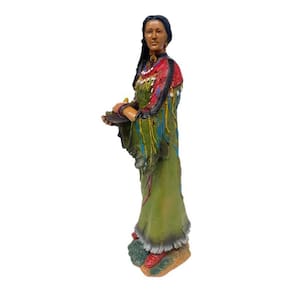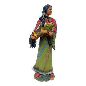 Escultura Índia Xamã em Pé Guerreira Cherokee 48 cm Resina