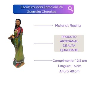 A escultura Índia Xamã em Pé Guerreira Cherokee da Bialluz, trará boas energias, bons fluídos e harmonia para sua casa. É ideal para colocar em seu altar ou completar a decoração de seu ambiente. Esculturas são itens especiais e decorativos, é um recurso que dá um toque a mais em qualquer ambiente, tem um valor espiritual e sentimental. Você pode enfeitar com um estilo próprio com muito bom gosto o seu altar ou ambiente.