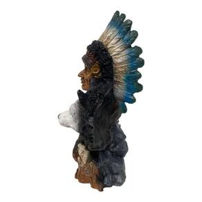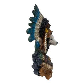 Escultura Índio Xamã com Lobo Lado Cocar 24 cm em Resina Escultura Índio Xamã com Lobo Lado Cocar 24 cm em Resina