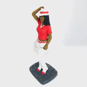Escultura Maria Navalha camisa vermelha e calça branca 16 cm em resina