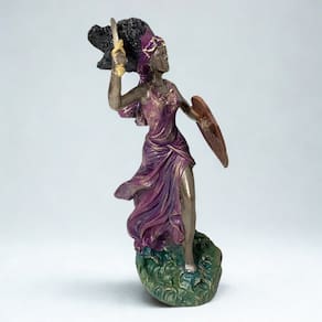 Imagem de Obbá, a orixá guerreira, símbolo de força feminina, coragem e sabedoria. Representada com espada erguida e escudo decorado, essa escultura de 20 cm exala proteção, bravura e ancestralidade. Uma peça marcante, ideal para altares, ambientes de fé ou como objeto de devoção e respeito às tradições do candomblé e umbanda. Produzida em resina resistente e finalizada com pintura artesanal em tons vibrantes, a peça carrega riqueza nos detalhes e presença visual impactante.