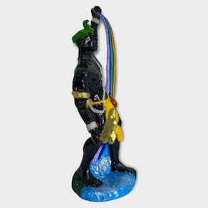 O Orixá Oxumaré também conhecido como Oxumarê representa a cobra arco-íris, que traz as características do animal como a mobilidade, agilidade e destreza. Ele mora no céu e viaja através do arco-íris para a Terra. Além disso, ele representa a fortuna, abundância, prosperidade e riqueza que são realizações importantes para o seu povo. Além de servir como decoração, essa linda escultura em resina de alta qualidade, pintura artesanal e acabamento rico em detalhes pode ser um ótimo presente para homenagear pessoas especiais.