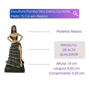 Escultura Pomba Gira Dama Da Noite Preta 15 Cm em Resina Pomba Gira Dama Da Noite, resolve problemas amorosos e traz a felicidade para os relacionamentos.Esta escultura em resina trará boas energias, bons fluídos e harmonia para sua casa. É ideal para colocar em seu altar ou completar a decoração de seu ambiente. Esculturas são itens especiais e decorativos, é um recurso que dá um toque a mais em qualquer ambiente, tem um valor espiritual e sentimental. Você pode enfeitar com um estilo próprio com muito bom gosto o seu altar ou ambiente.Aplicação:Decora sala, estantes, home office, altares, aparadores, mesa de canto ou escritório. É também uma ótima opção para presentear, tem um excelente acabamento e pintura feita a mão, permite mais beleza e estilo para sua casa ou escritório.Dimensões da peça aproximadas: C x L x A 5,50 cm x 7 cm x 15 cmPeso aproximado da peça: 297 gMaterial: 100% Resina de alta qualidade - lavávelTire todas as suas Dúvidas antes de concluir a compra. Iremos responder o mais breve possível.Embalagem de Envio:Caixa de papelão ondulado, plástico bolha, conforme necessidade do produto.Consulte nossos preços e condições para vendas.Ideal para o seu altar. Ótima resistência e durabilidade.Respostas das dúvidas mais frequentes na ordem:R1: Já realizamos milhares de entregas em todo o Brasil, somos especialistas no que fazemos.R2: Assim que seu pedido for despachado, esta plataforma envia para você o código de rastreamento.R3: Enviamos o produto 100% inspecionado e conferido em nosso checkout e são embalados em embalagem de papelão e plástico bolha.R5: Iremos despachar o seu produto o mais rápido possível, assim que for confirmado pela plataforma, enviamos em até 24h.R6: Nós queremos a sua satisfação, qualquer problema iremos te auxiliar em nossos canais de comunicações. Marca: Lua Mística - 100% Original - Loja Oficial