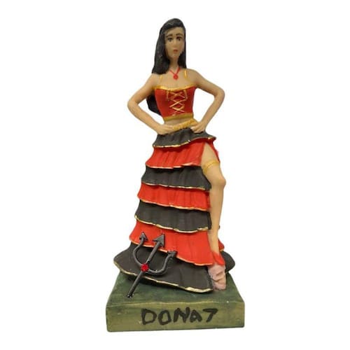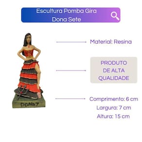 Escultura Pomba Gira Dona Sete 15 cm Crânio Resina Dona Sete é vista como uma figura poderosa, capaz de influênciar relacionamentos e questões amorosas.