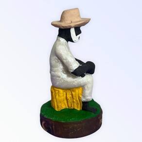 Escultura Preto Velho em Resina 8 cm As imagens do Preto Velho e Preta Velha apresentam em suas qualidades a forte vibração de espíritos humildes, que parecem que enriqueceram suas almas com o sofrimento em vida. Embora nem todos fizeram parte da época da escravidão, a maioria provém deste período, todavia as marcas dessa vida de luta os premiaram com a calma de quem acredita no amanhã e que conhece a verdadeira natureza humana, podendo assim passarem os mais belos, realistas e tocantes conselhos. Sentados em seus banquinhos e fumando seus cachimbos, os Pretos e Pretas Velhas são sem dúvida alguma as figuras mais impactantes em seus conselhos em um terreiro. Suas orientações contém uma elevada sabedoria espiritual. Esta escultura em resina trará boas energias, bons fluídos e harmonia para sua casa. É ideal para colocar em seu altar ou completar a decoração de seu ambiente. Esculturas são itens especiais e decorativos pelo valor espiritual e sentimental. Você pode enfeitar e marcar com estilo próprio e muito bom gosto o seu altar ou ambiente. Aplicação: além de servir como decoração, essa linda escultura em resina de alta qualidade, pintura artesanal e acabamento rico em detalhes pode ser um ótimo presente para homenagear pessoas especiais. Decora sala, estantes, home office, altares, aparadores, mesa de canto ou escritório. É também uma ótima opção para presente, o excelente acabamento da pintura permite mais beleza e estilo para sua casa ou escritório. Especificações técnicas:Material: Resina e pode ocorrer pequenas variações de cores por ser uma peça artesanal e pintada à mão. Marca: Bialluz Presentes