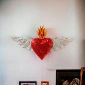 Apresentando o Coração Alado: uma escultura de parede encantadora que adiciona um toque romântico ao seu espaço. Com um coração vermelho e asas brancas, medindo 34 cm x 20 cm, essa peça se destaca em qualquer parede. Feita com materiais de alta qualidade.