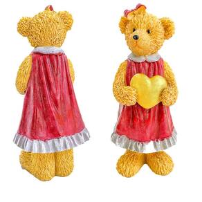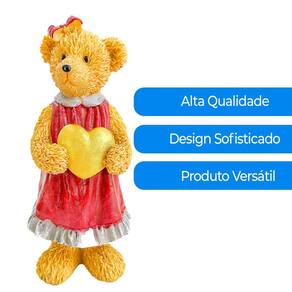 Escultura urso de resina menina coração 22cm