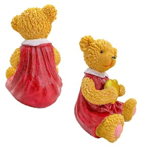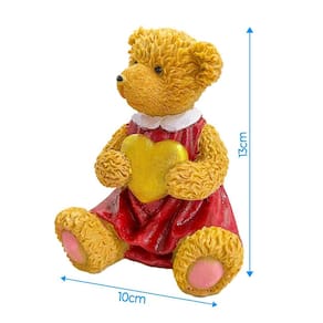 Escultura Urso Resina Menina Coração Sentado 13Cm