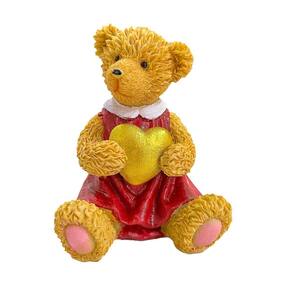 Escultura urso resina menina coração sentado 13cm
