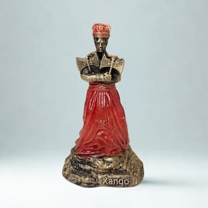 Leve a força da justiça para o seu espaço com esta imponente escultura de Xangô em resina de 11 cm. Vestido com manto vermelho e coroa, ele empunha seus machados duplos (oxés), símbolo de autoridade, coragem e equilíbrio. Ideal para quem busca proteção, energia e conexão com o Orixá da justiça.