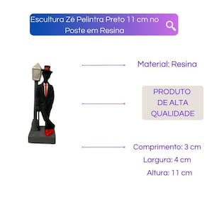 Escultura Zé Pelintra no Poste 11 cm em Resina Cor: Preto Escultura Zé Pelintra no Poste 11 cm em Resina
