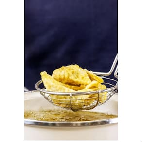 A escumadeira da KitchenAid possui a parte principal feita de aço inoxidável extra grande com aberturas, permitindo que o líquido escorra rapidamente.