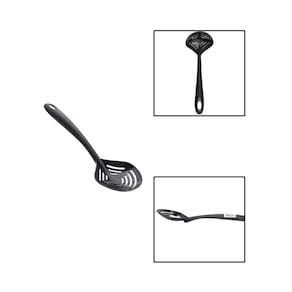 A Escumadeira de Plástico Preta é o utensílio ideal para quem busca praticidade e segurança na hora de cozinhar. Fabricada em plástico resistente e durável, permite escorrer líquidos e retirar alimentos quentes sem riscar suas panelas antiaderentes. Seu design ergonômico e leve proporciona conforto no manuseio, enquanto o acabamento preto traz um toque moderno à sua cozinha. Perfeita para frituras, massas, legumes e muito mais, é indispensável no dia a dia de quem gosta de praticidade e eficiência no preparo das refeições.