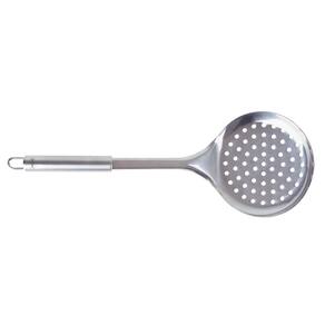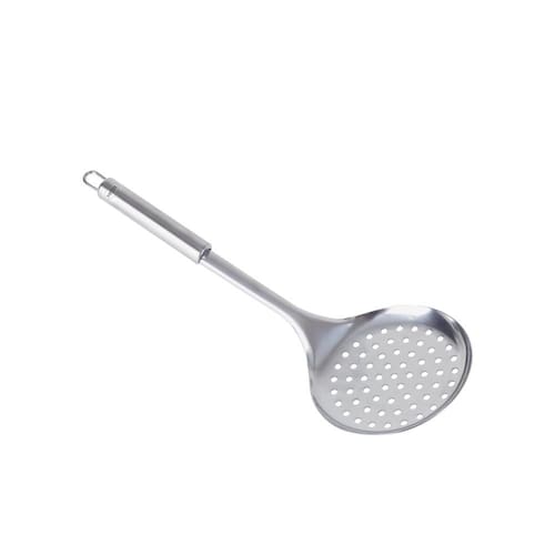 A Escumadeira Inox é item fundamental em qualquer cozinha. É ideal para manusear frituras e separar alimentos sólidos dos líquidos. Fabricada em aço inoxidável 410, ela combina resistência à corrosão com durabilidade. Além disso, suporta temperaturas de até 220ºC.Seu design funcional conta com uma ampla área perfurada, que permite o escoamento, e um cabo ergonômico com abertura para pendurar, garantindo a otimização do espaço na cozinha. Além disso, é fácil de limpar e também pode ser levado à lava-louças.Obs: evitar o uso em superfícies antiaderentes sensíveis para não riscar.