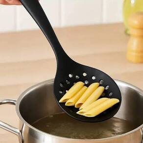 Escumadeira Preta 33cm de Silicone Flexível Livre de BPA Escumadeira Preta 33cm de Silicone Flexível Livre de BPA ===================================== Com design moderno e funcional, ela é ideal para retirar alimentos fritos ou cozidos da panela sem danificar superfícies antiaderentes.