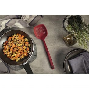 Preparar alimentos com mais cuidado e leveza fica mais fácil com a escumadeira Tramontina Softta em silicone vermelho. Resistente a até 210 C, ela é perfeita para lidar com alimentos quentes sem comprometer panelas com revestimento antiaderente. O silicone evita riscos, enquanto o cabo anatômico garante conforto no uso. A tonalidade vibrante adiciona personalidade à cozinha, e a limpeza é simples: pode ir direto à lava-louça. Um utensílio que alia praticidade no preparo ao cuidado com cada detalhe da sua rotina.