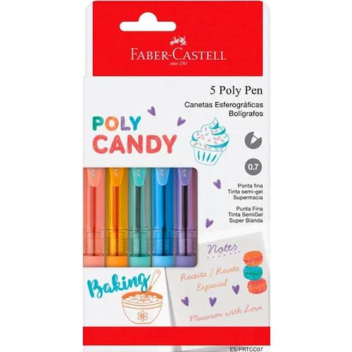 Caneta Esferográfica 0.7mm Poly Candy 5 Cores Faber-Castell