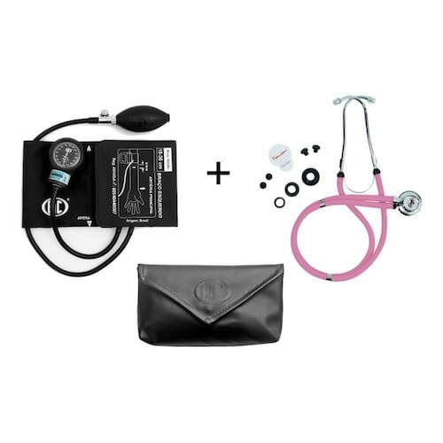 CONTEÚDO DA EMBALAGEM: 01 Aparelho de pressão Adulto Nylon Fecho de Contato New Innova Plus – BIC 01 Estetoscópio Rappaport. 01 membrana adulto 01 membrana Infantil 02 par de olivas macias 02 anéis para ausculta pulmonar adulto e infantil Manual de instruções.