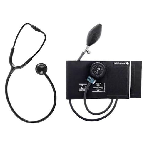 Descrição do produto: Esfigmomanômetro com braçadeira em nylon, argola e com fecho de contato e estetoscópio master duplo inox. O aparelho de pressão arterial adulto de alta precisão e sensibilidade com sistema de fecho de contato com argola, obtendo um melhor diagnóstico seguro e confiável, testado rigorosamente pelo controle de qualidade BIC, acompanha bolsa exclusiva. O estetoscópio duplo é um aparelho indicado para verificação de sinais vitais, auxilia na aferição de pressão arterial e serviços de triagem. É utilizado para realizar a ausculta de alta e baixa frequência, seu auscultador duplo permite ser usado em dupla função. - Tamanho adulto - Estojo para acondicionamento e transporte - Manual de Instruções - Certificado de verificação pelo INMETRO Características do produto: Composição: Esfigmomanômetro com braçadeira em nylon, argola e com fecho de contato e estetoscópio master duplo inox