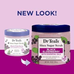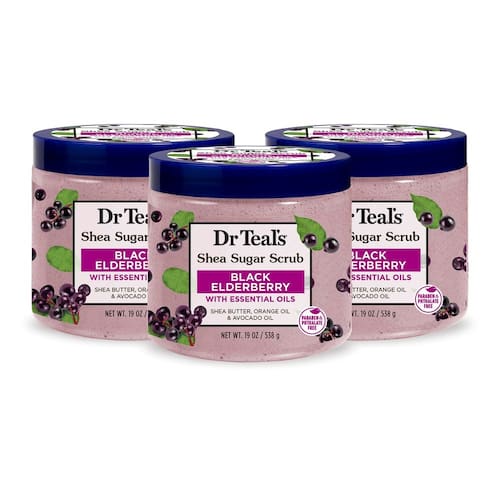 Esfoliante corporal Dr. Teal's Shea Sugar, sabugueiro preto com óleos essenciais, 19 onças (pacote com 3) (a embalagem pode variar)