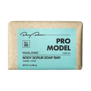 MARLOWE. Não. Sabonete 069 Pro Model Body Scrub Bar, Âmbar + Spice MARLOWE. criou um sabonete esfoliante corporal para sua rotina diária de banho esfoliante e refrescante. Projetado para esfoliar células mortas da pele, ele limpa enquanto preserva o equilíbrio natural da umidade, deixando a pele refrescada e suave. O aroma sophisitcated Santal tem toques de cardamomo picante e notas apimentadas, adicionando um toque sutil que mantém as coisas intrigantes. Este aroma leve, amadeirado e refrescante mantém sua pele fresca durante todo o dia. Cuidadosamente trabalhado com uma mistura única de pedra-pomes, pó de semente de damasco, óleo de oliva, manteiga de karité e infundido com fragrância de âmbar e especiarias para proporcionar aroma masculino, este sabonete é formulado sem parabenos e ftalatos. Massageie suavemente a barra de sabão sobre a pele para esfoliar e limpar. Lavar e limpar.