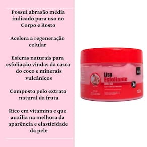 você deseja alcançar uma pele macia, suave e irresistivelmente radiante o esfoliante lisa morango bio soft é a resposta descubra como este produto incrível pode transformar sua rotina de cuidados com a pele, proporcionando benefícios notáveis para o corpo e rosto. O esfoliante de morango bio soft é um esfoliante indicado tanto para uso facial quanto para corporal e é composto pelo extrato natural da fruta que é rica em vitamina c e agentes que ajudam na produção de colágeno e melhora da elasticidade da pele, além de auxiliar na uniformização de áreas escurecidas deixando a pele ultra macia e mais iluminada. Possui ainda naturais para esfoliação vindas da casca do coco e minerais vulcânicos. Ah e para completar lisa morango é extremamente perfumado com um cheirinho gostoso de morango. Benefícios do esfoliante lisa morango: