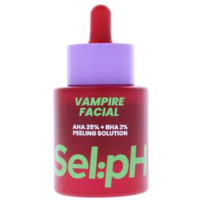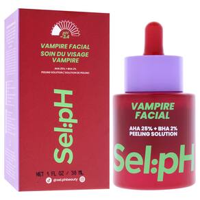 O Sel:pH Vampire Skin Peel combina 25% de AHA e 2% de BHA, incluindo ácidos glicólico, lático e salicílico, para uma poderosa esfoliação de 10 minutos que ressurge, suaviza e ilumina. Não comedogênico, vegano, sem perfume e recomendado por dermatologistas.